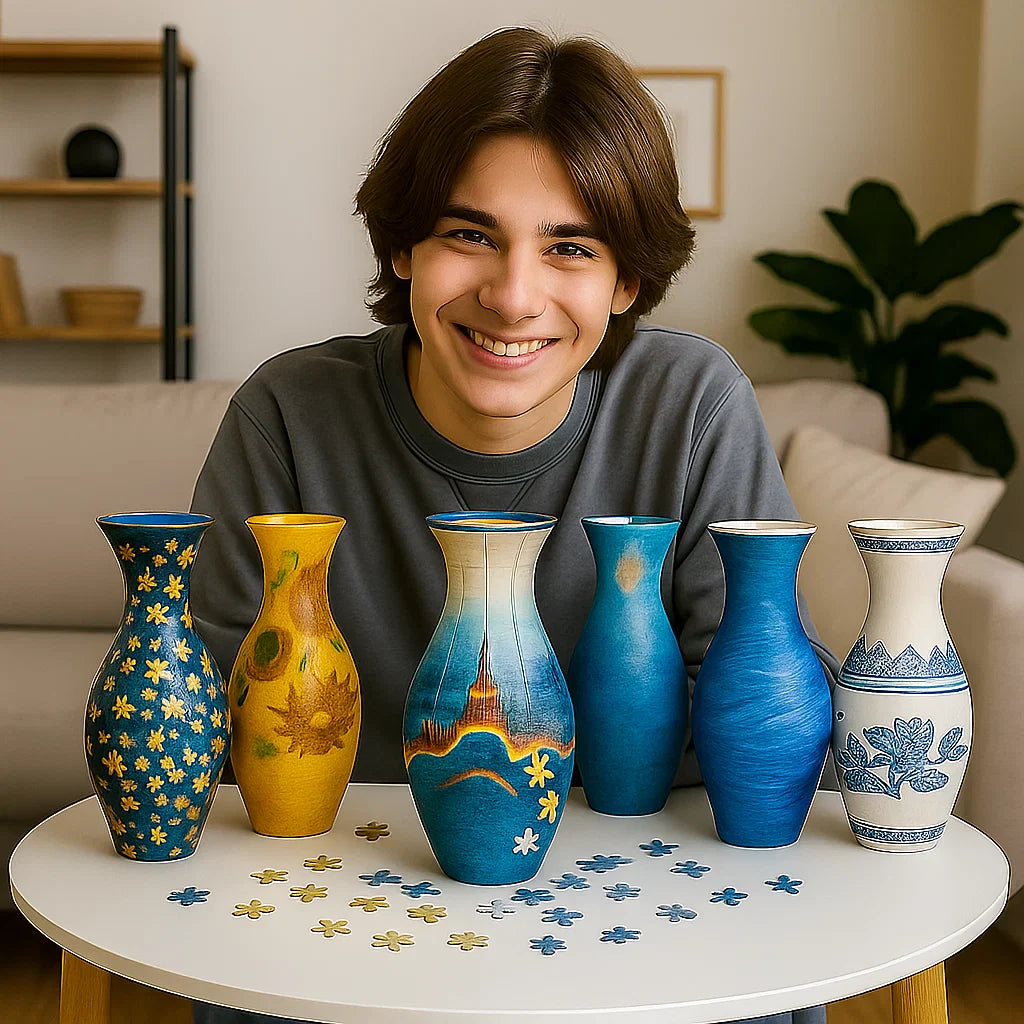 W przeciwieństwie do klasycznych puzzli, które po ułożeniu zwykle się rozkłada, ten wazon pozostaje trwałym obiektem wysokiej jakości. Dzięki temu zyskujesz dzieło sztuki, które możesz codziennie używać i z dumą prezentować.