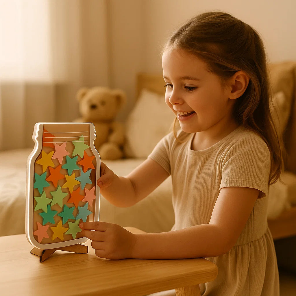 Pomóż swojemu dziecku zbudować pewność siebie, odpowiedzialność i zamiłowanie do nauki dzięki słoikowi z gwiazdkami dla dzieci. Zaprojektowany jako kolorowe i interaktywne narzędzie motywacyjne, ten wypełniony gwiazdami słoik sprawia, że pozytywne wzmocnienie jest zabawne, wizualne i głęboko satysfakcjonujące. Niezależnie od tego, czy chodzi o wykonywanie obowiązków domowych, okazywanie życzliwości, czy koncentrowanie się na zadaniach szkolnych, każda zdobyta gwiazdka staje się dumnym symbolem postępu - i dużym krokiem w kierunku lepszych nawyków.