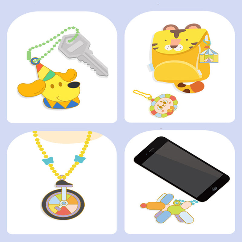 Świetne dla małych twórców. Wystarczy wypełnić formę kolorami, zostawić do wyschnięcia i przypiąć łańcuszek. To łatwy i angażujący sposób na budowanie pewności w kreatywnym działaniu.