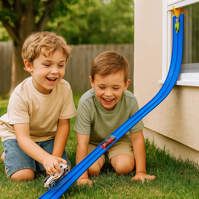 Elastyczne tory łatwo dopasowują się do każdej przestrzeni. Dzieci mogą eksperymentować, przebudowywać i tworzyć nowe trasy samodzielnie – co wzmacnia ich kreatywność i pewność siebie.