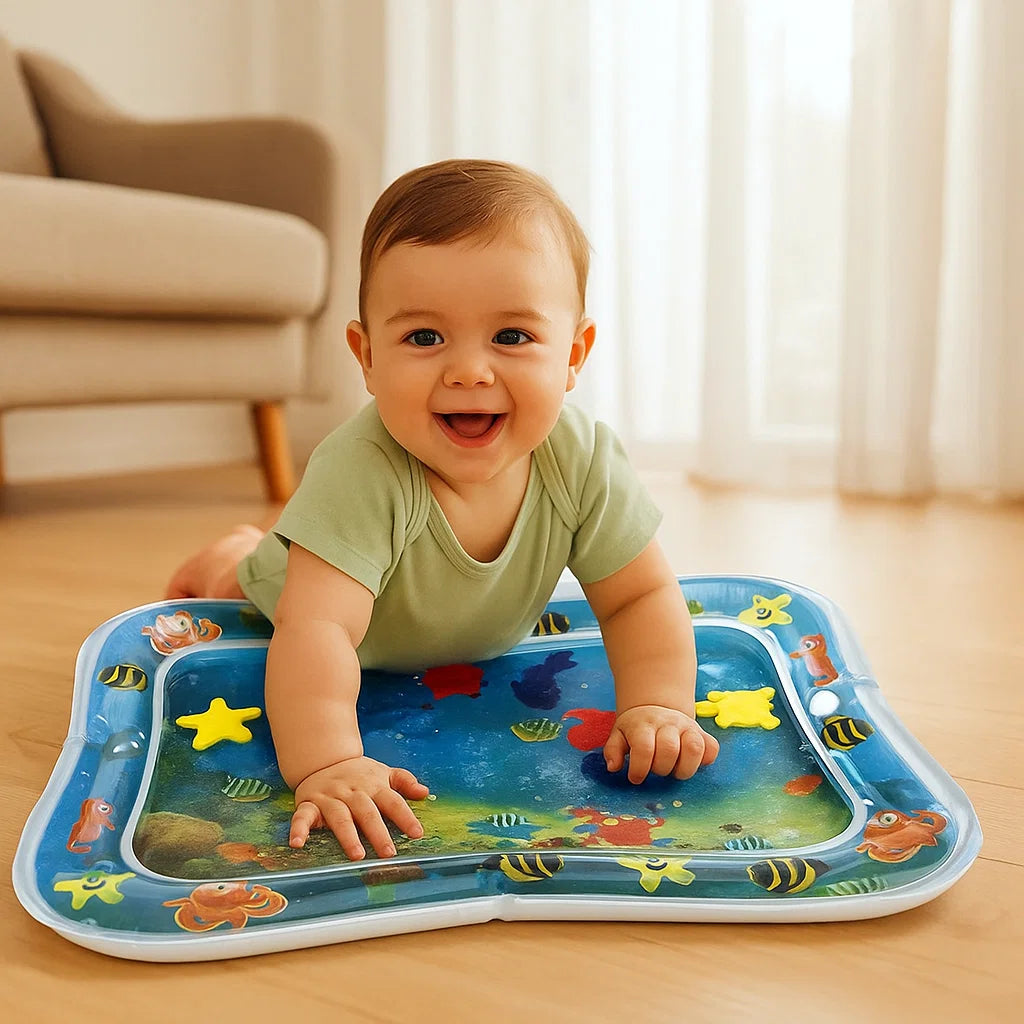 Czas na brzuszku (czas na brzuszku) pomaga niemowlętom wzmacniać mięśnie szyi, ramion i rąk – to niezbędny krok przed raczkowaniem, siadaniem i później chodzeniem. Nasza mata wodna sprawia, że tummy time staje się zabawny, bezpieczny i atrakcyjny, dzięki czemu Twoje dziecko chętniej pozostaje dłużej na brzuszku.