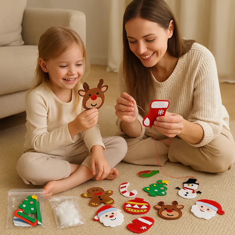 Świąteczny zestaw filcowy do samodzielnego szycia wnosi radość świątecznych rękodzieł do każdego domu! Gotowe, wycięte elementy z filcu, kolorowe nici i bezpieczne, tępe igły pozwalają dzieciom i dorosłym wspólnie tworzyć urocze bożonarodzeniowe postacie – renifery, gwiazdki, małe ozdoby choinkowe i wiele więcej.