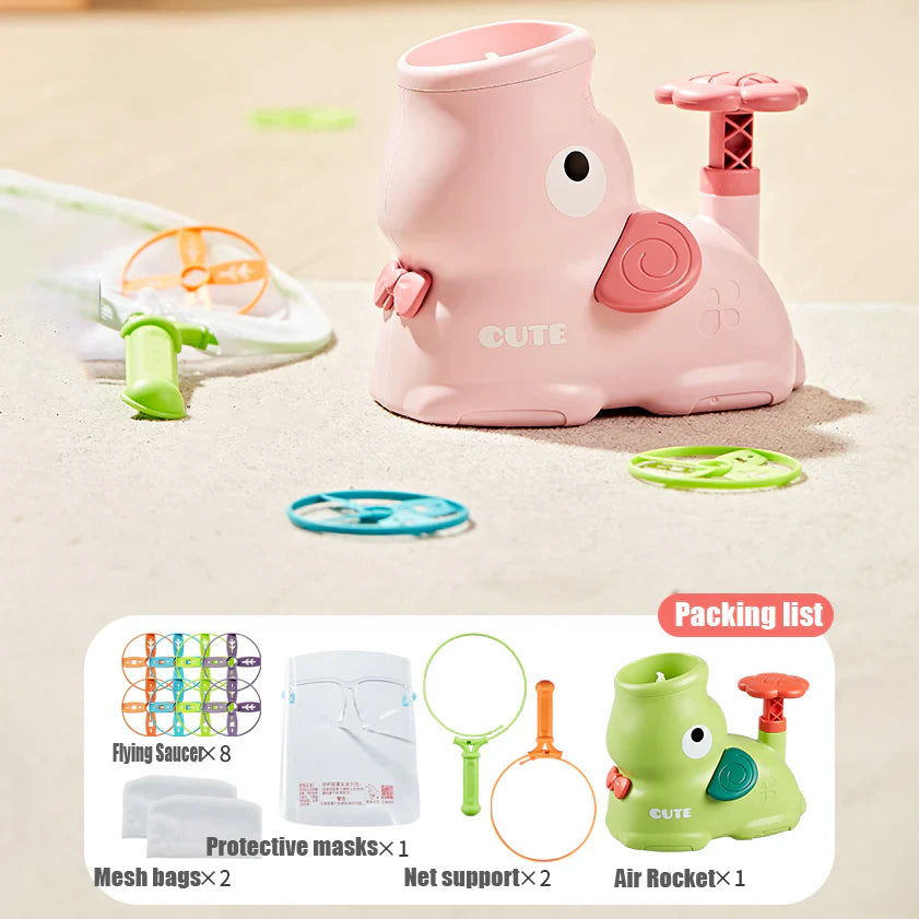 - 🌀 Ekscytujące Latające Dyski: Włóż dysk, naciśnij przycisk i zobacz, jak z energią unosi się w powietrze.