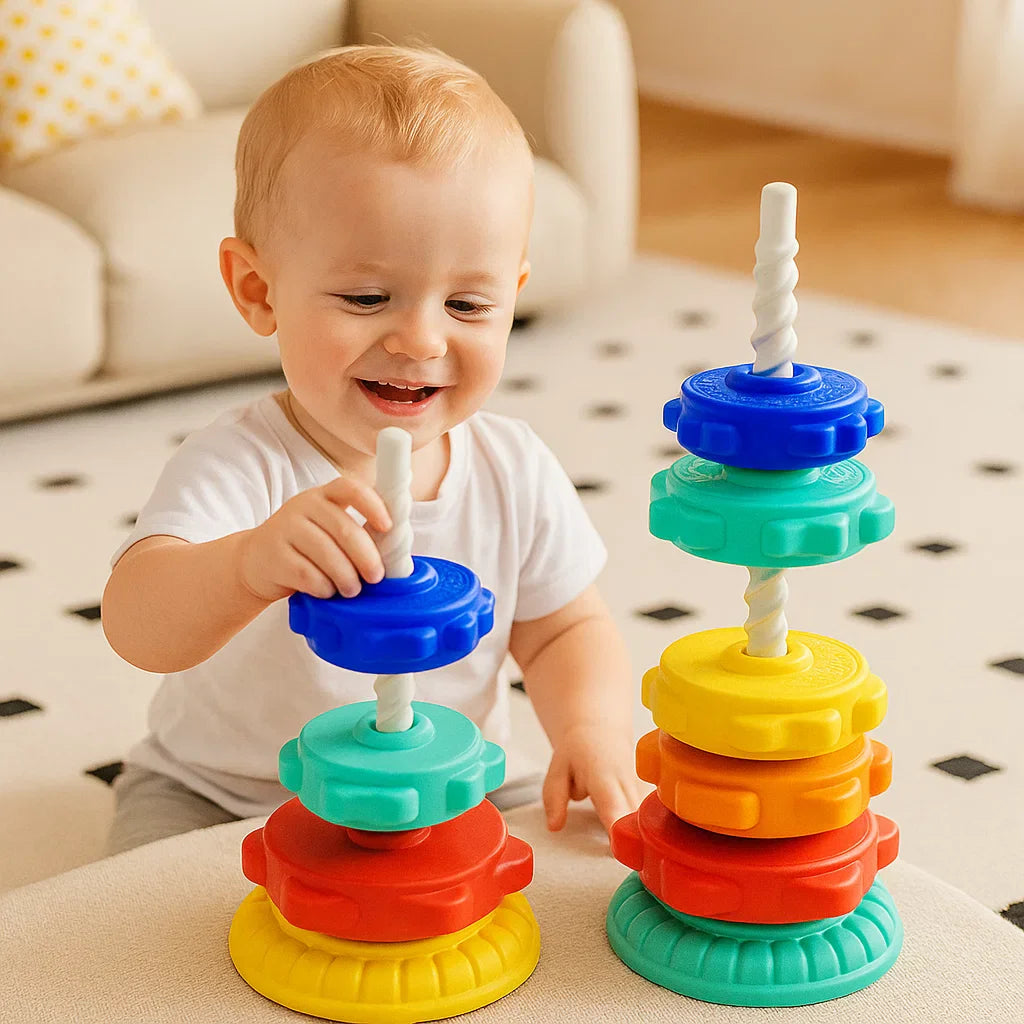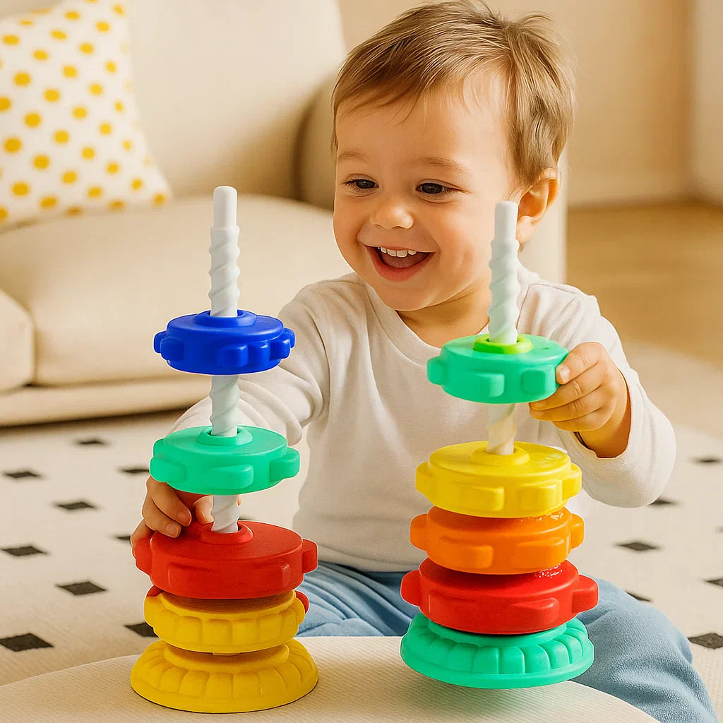 Tęczowa wieża obrotowa i kolorowa zachwyca dzieci swoim barwnym wyglądem i fascynującymi ruchami. Podczas obracania, układania i obserwowania maluchy w zabawny sposób poznają zależności między kolorami, kształtami i ruchem – jednocześnie rozwijając ważne umiejętności. Zabawka, która doskonale łączy radość, wyobraźnię i naukę.