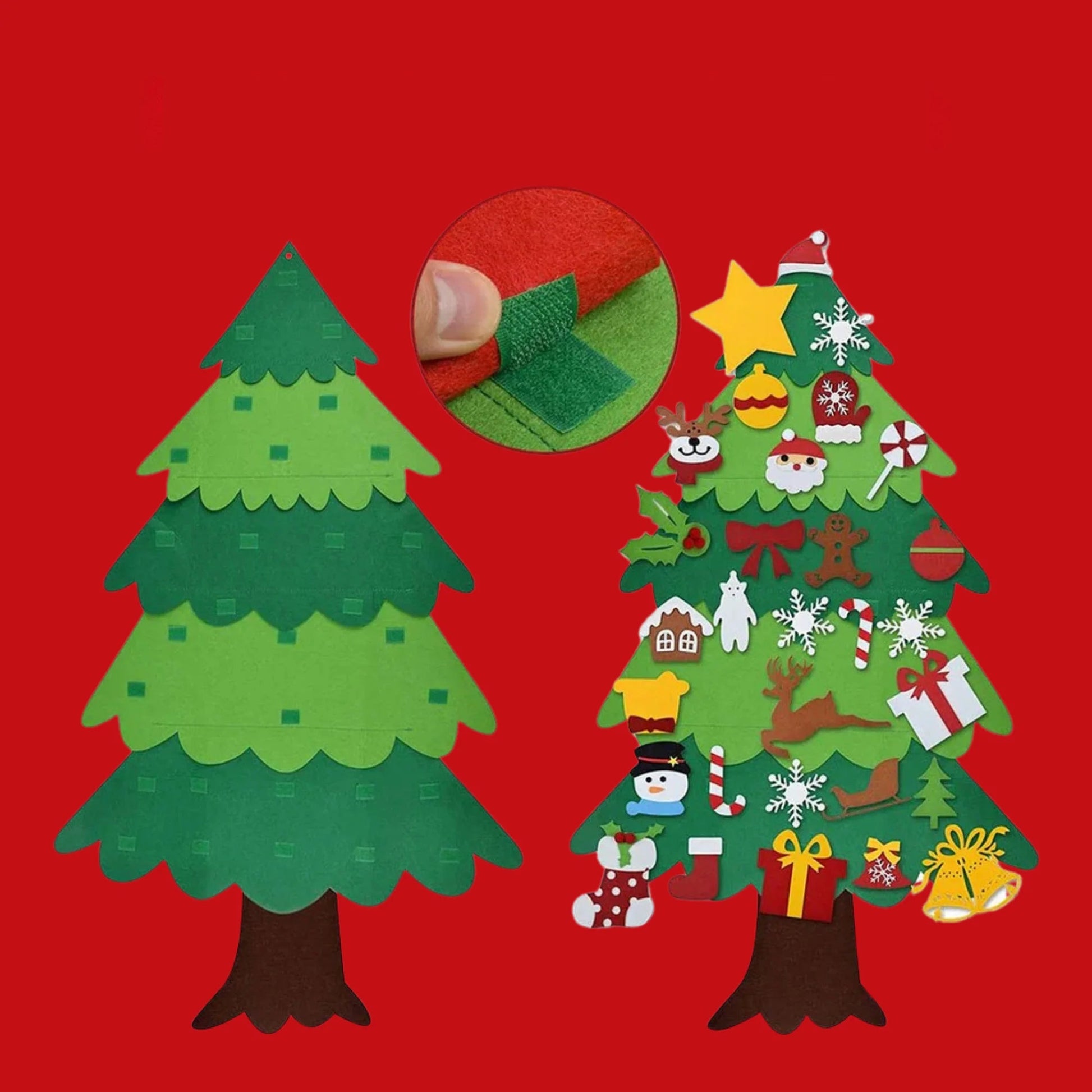 Interaktywny zestaw filcowej choinki bożonarodzeniowej został zaprojektowany tak, by był wygodny, bezpieczny i oszczędzał miejsce. Choinkę można zawiesić na ścianie, dzięki czemu nie ma bałaganu ani ryzyka, a dzieci mogą swobodnie bawić się i dekorować.