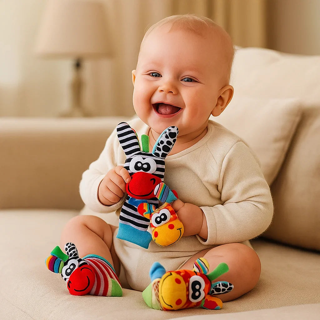 Wprowadź swojego malucha w świat zabawnych dźwięków i żywych kolorów dzięki temu uroczemu zestawowi grzechotka na nadgarstek i skarpetki. Zaprojektowany, aby pobudzać ciekawość i stymulować wczesny rozwój, ten miękki zestaw zabawek przekształca każdy ruch w zabawną naukę.