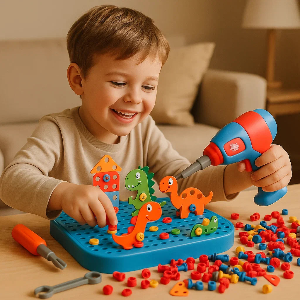 - 🛠️ Rozwija zręczność i motorykę – Wkręcanie, łączenie i montaż ćwiczą dłonie i oczy jednocześnie.